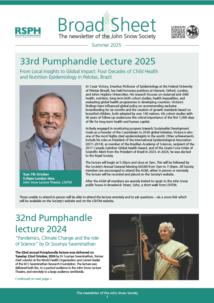 - 1996 Professor Richard Feachem: Would John Snow have joined the world bank?